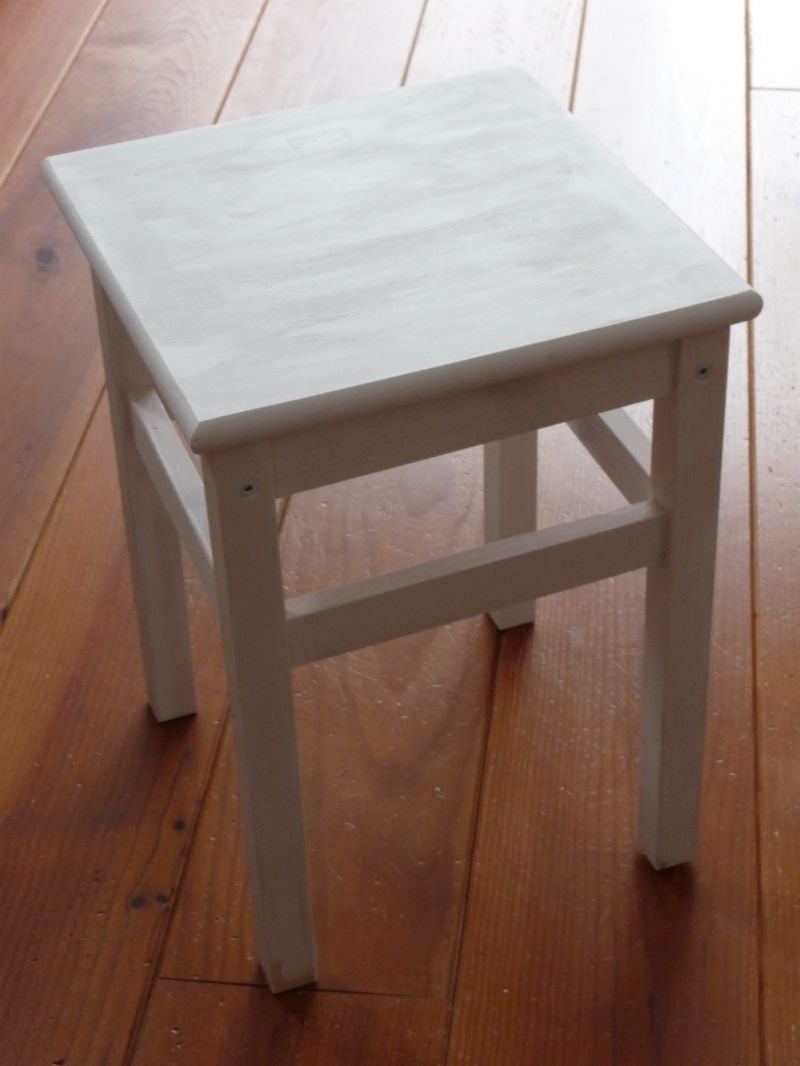Een krukje beschilderd in de stijl van geboortekaartje kost € 55,-